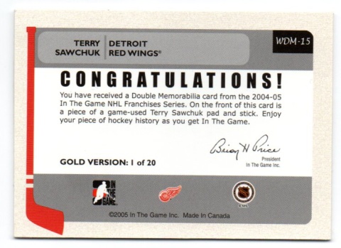 2004 - 2005 ITG Franchises */20 Terry Sawchuk - pad, stick |