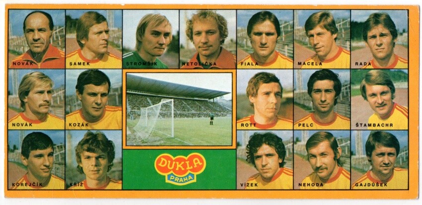 Dukla Praha 1978/79 autogramy: Zdeněk Nehoda, Ladislav Vízek, Luděk Macela, Karel Stromšík, Miroslav Gajdůšek, Oldřich Rott, Stanislav Pelc, Jan Fiala, Václav Samek, František Štambacher |