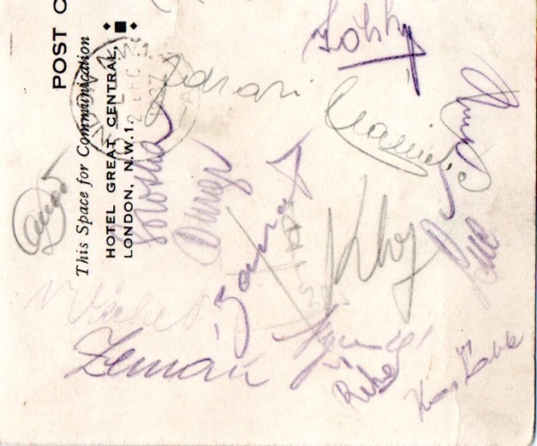 autogramy: František Plánička, Josef Košťálek, Ferdinand Daučík, Antonín Vodička, Jaroslav Bouček, Karel Kolský,